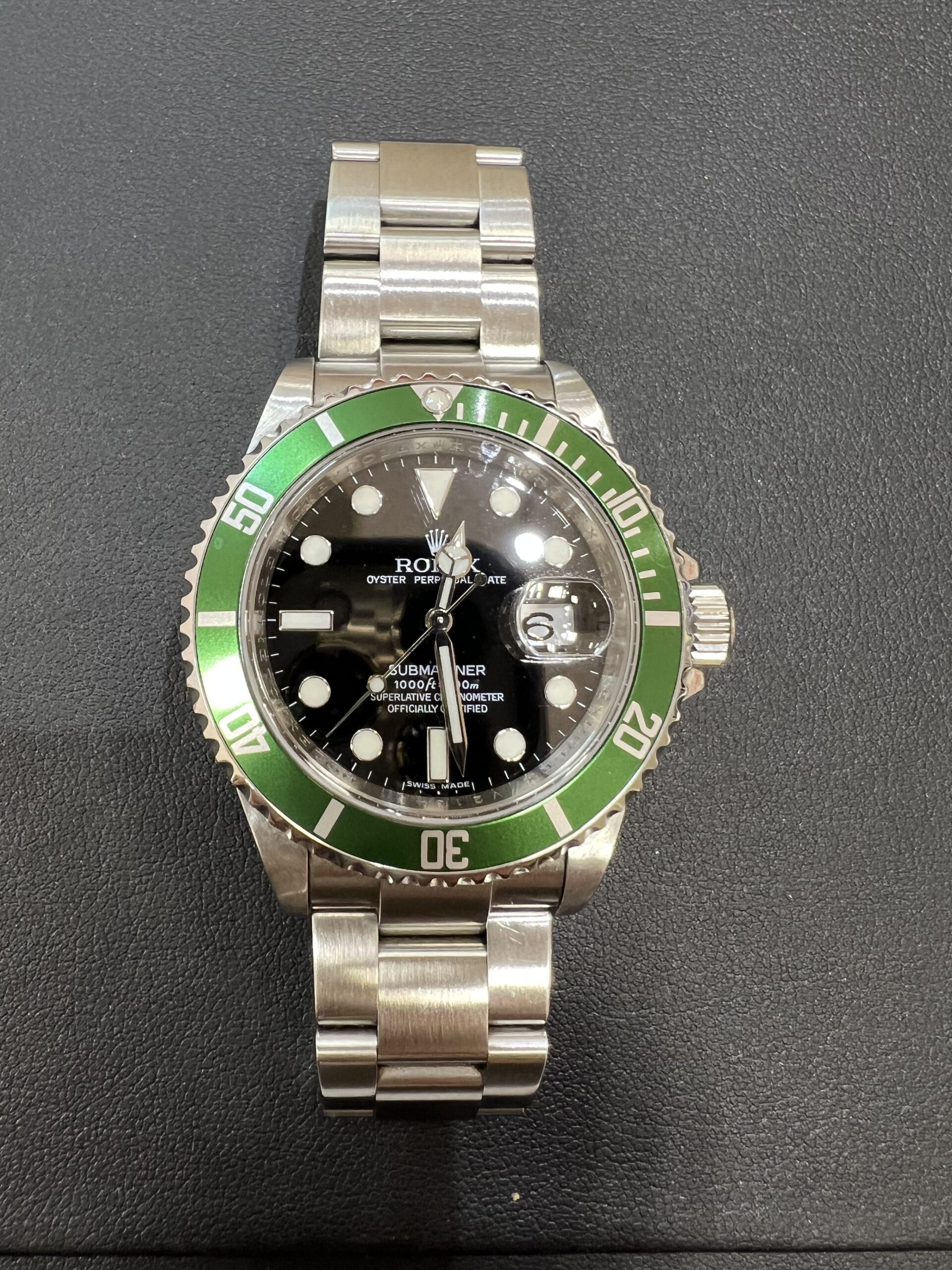 ロレックス サブマリーナ 鮮やかなグリーンダイアルは自光で 48時間青色に発光するクロマライト…